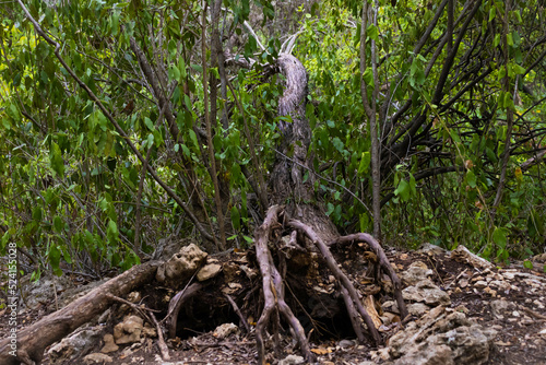 Obraz premium Fallen tree in forest with roots exposed