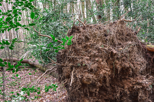 Obraz premium Fallen tree roots on the forest floor