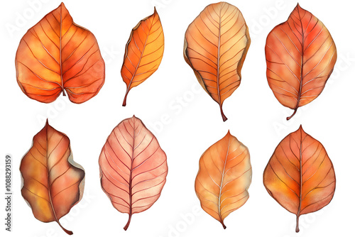 © Rattanapon, Obraz premium Falling autumn leaves isolated on white background, png cut out.