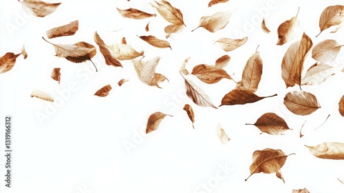 © Lush Diaries, Fototapeta premium Falling autumn leaves on white background