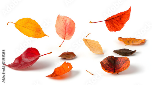 © Mmmd, Obraz premium Falling Autumn Leaves White Background