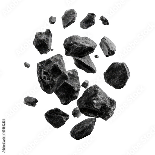 © Nazmunnahar, Naklejka premium Falling Black Rocks Isolated on Transparent Background