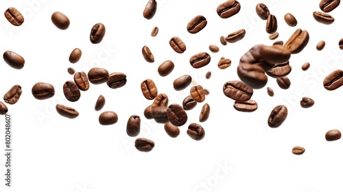 © Alpa, Naklejka premium Falling coffee beans for coffee drink promotion concept isolated on white background.