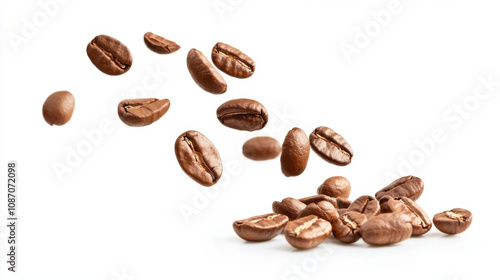 © Lovely Studio , Naklejka premium Falling coffee beans isolated on white background