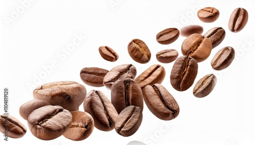 © Rahmat , Obraz premium Falling coffee beans isolated white background