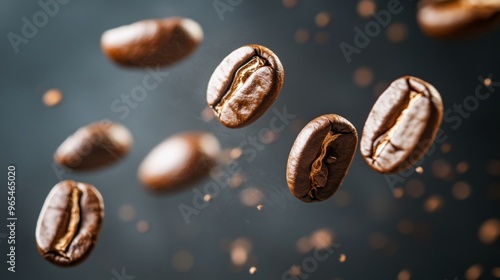 © wanna, Obraz premium Falling coffee beans on a black background