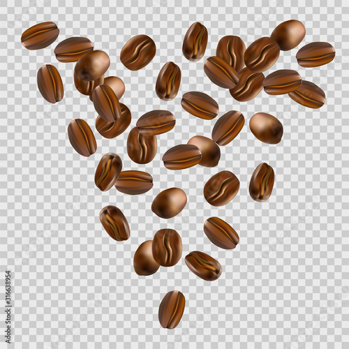© Yuri Hoyda, Obraz premium Falling coffee beans on transparent background. Vector Illustration.