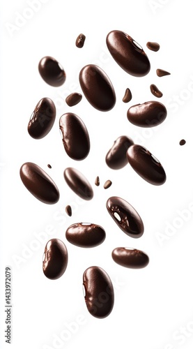 © Yothin, Fototapeta premium Falling Dark Brown Beans on White Background