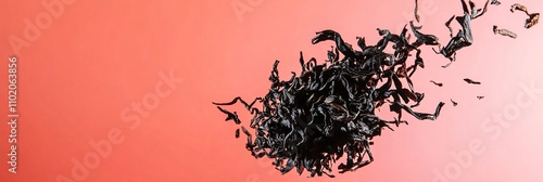 © Todd's Studio, Naklejka premium falling dried black tea on solid background color light red