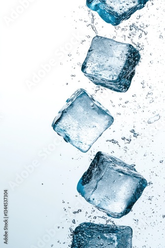 © Viktoriia, Obraz premium Falling ice cubes create refreshing splash, capturing dynamic mo