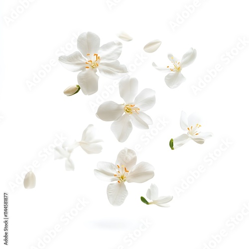 © SKY, Obraz premium falling jasmine flower isolated on white