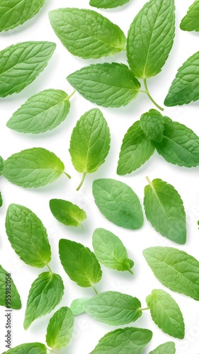 © Organicpatterns, Fototapeta premium Falling Mint Leaves on White Background