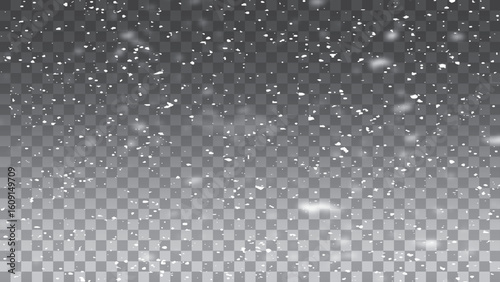 Fototapeta premium Falling realistic snowflakes on a transparent background for winter decor.