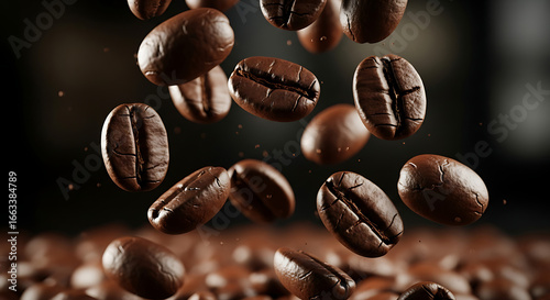 Obraz premium Falling Roasted Coffee Beans