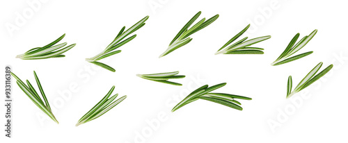 © SnapSale Studio, Naklejka premium Falling rosemary leaves isolated on white background