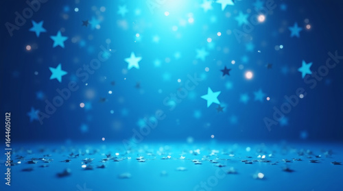 Obraz premium Falling silver and blue stars on blue surface, for festive or...