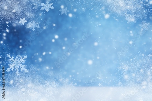 © Alexandr, Naklejka premium Falling snow and snowflakes. Winter christmas abstract blue background,