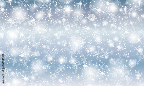 © KrikHill, Obraz premium Falling snow background. Vector illustration