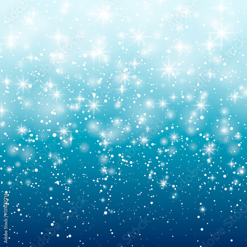 © gorbachlena, Obraz premium Falling snow on a blue background. Vector illustration 10 EPS. Abstract white glitter snowflake background. Vector magic Christmas eve snowfall.