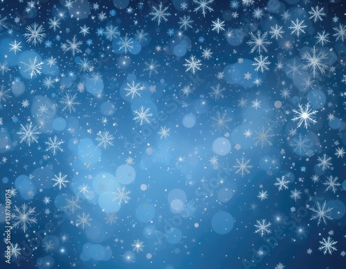 © GL, Fototapeta premium Falling Snowflakes and Bokeh Lights on a Festive Blue Background
