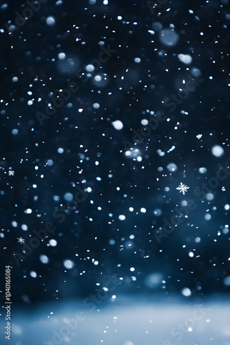 © Anastasia, Obraz premium Falling snowflakes create a serene and minimalistic atmosphere, gently covering a dark background with a frosty shimmer and a sense of calm