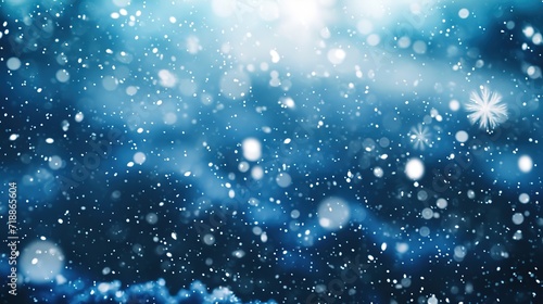 Fototapeta premium Falling snowflakes on night sky white background. Bokeh with white snow and snowflakes on a blue background