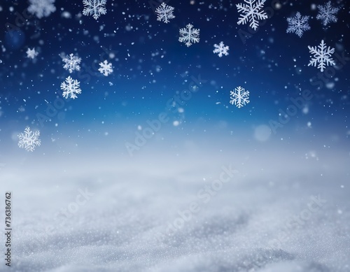 Naklejka premium Falling snowflakes on night sky white background. Bokeh with white snow and snowflakes on a blue background.