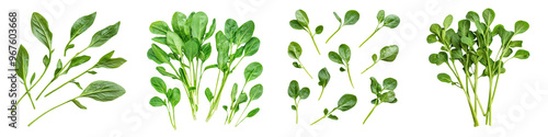 Obraz premium falling water spinach stems on white background,transparent background