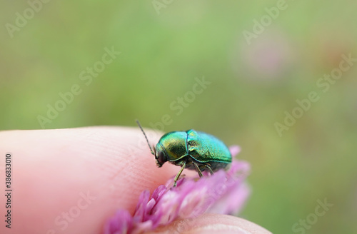 © Revilo Lessen, Fototapeta premium Fallkäfer auf einen Finger