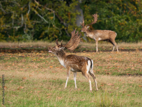 © Stephan Morris , Fototapeta premium Fallow Deer Buck Walking Bellowing in the Rut