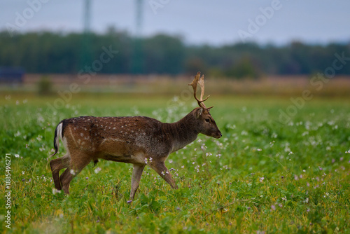 Naklejka premium Fallow deer,, dama dama,, in field near Carpathian forest, Slovakia