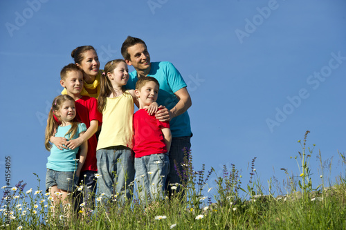 © Fotograf Daniel Mock, Fototapeta premium Familie beim wandern in der Natur.