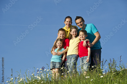 © Fotograf Daniel Mock, Fototapeta premium Familie beim wandern in der Natur.