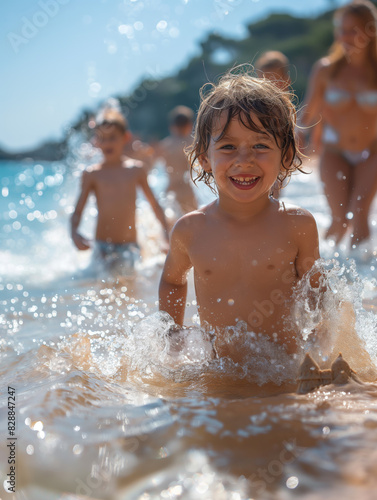 Obraz premium Familie genießt einen sonnigen Tag am Strand