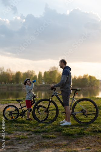 © Егор Фомин, Obraz premium Family bike ride at sunrise