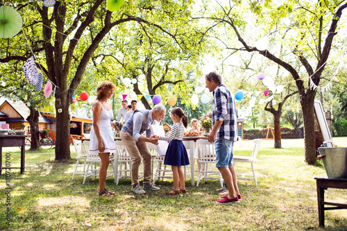 © Halfpoint, Obraz premium Family celebration or a garden party outside in the backyard.
