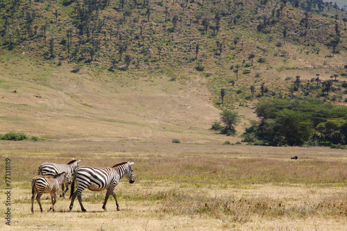 © mattiaath, Fototapeta premium Family common zebras in Ngorongoro