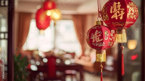© RoAlin, Naklejka premium Family decorating home with red and gold Chinese decor