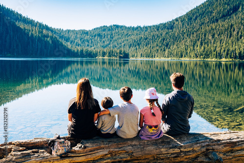 © meny.arigur, Fototapeta premium Family hiking, Paradise Meadows Loop Trail, Strathcona Provincial Park, Vancouver Island, BC, Canada