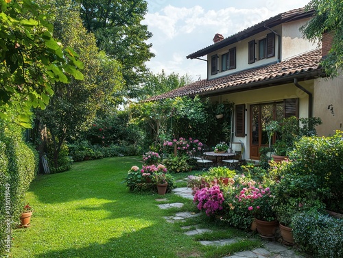 Fototapeta premium Family house with a beautiful garden setting