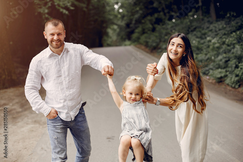 Fototapeta premium Family in a summer park. Mother and little daughter playing. Cute little girl with a father