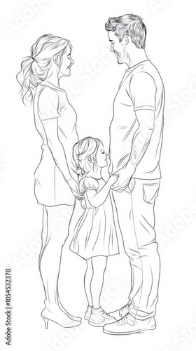 Obraz premium Family Line Art Illustration of Loving Parents with Child