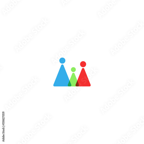 © Sergii Syzonenko, Fototapeta premium Family logo mockup, silhouette mother, father and child together overlapping triangles shape. Contour human group friendship emblem