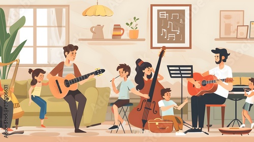 Fototapeta premium Family Music Band - Togetherness, Harmony, and Joyful Sounds