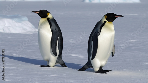 © artchvit, Fototapeta premium Family of Emperor Penguins on Snowy Antarctic Landscape