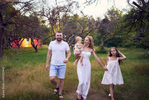 © Victoria Antre, Fototapeta premium family of four on a walk in the park