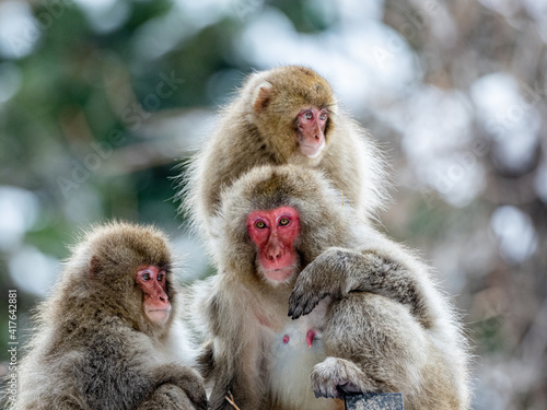 Fototapeta premium family of Japanese macaque snow monkeys together 1