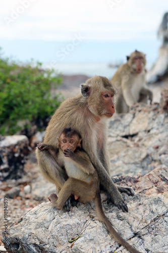 Naklejka premium Family of monkey – mother and child