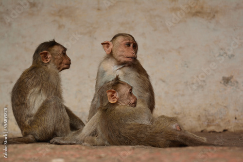 © Srijita Photography, Naklejka premium Family of Monkeys cuddling together