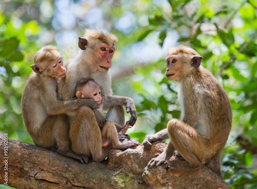 Obraz premium Family of monkeys sitting in a tree. Funny picture. Sri Lanka.